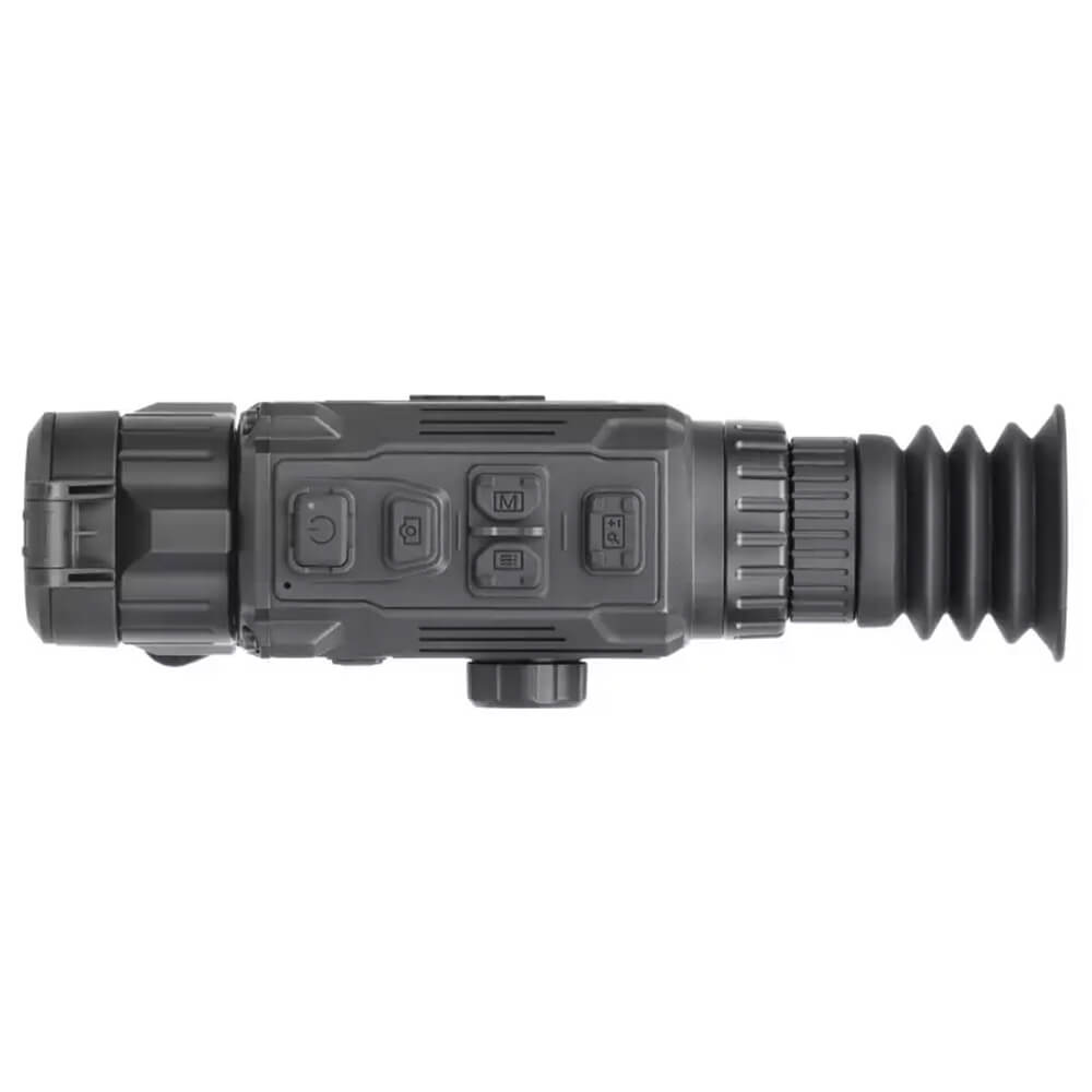 It features a 19mm Germanium lens, a 256x192 resolution thermal sensor, and a 2.5x base magnification with a detection range of up to 950 yards. Its wide Field of View (9.3° × 6.9° or 49 feet at 100 yards) allows for extensive area coverage during scanning. The upgrade from a 25 Hz to a 50 Hz refresh rate in the Rattler V2 19-256 ensures smoother scanning with minimal lag.