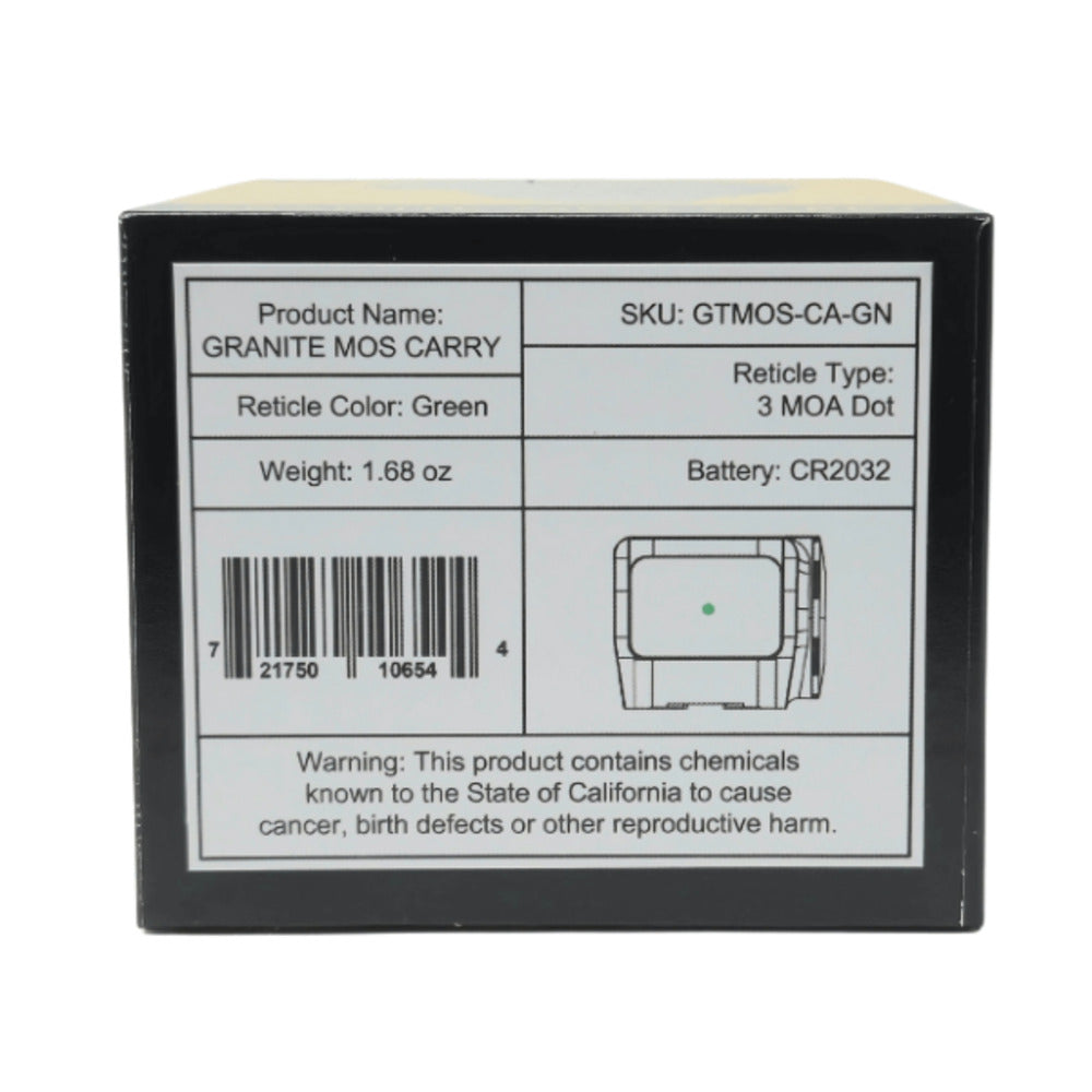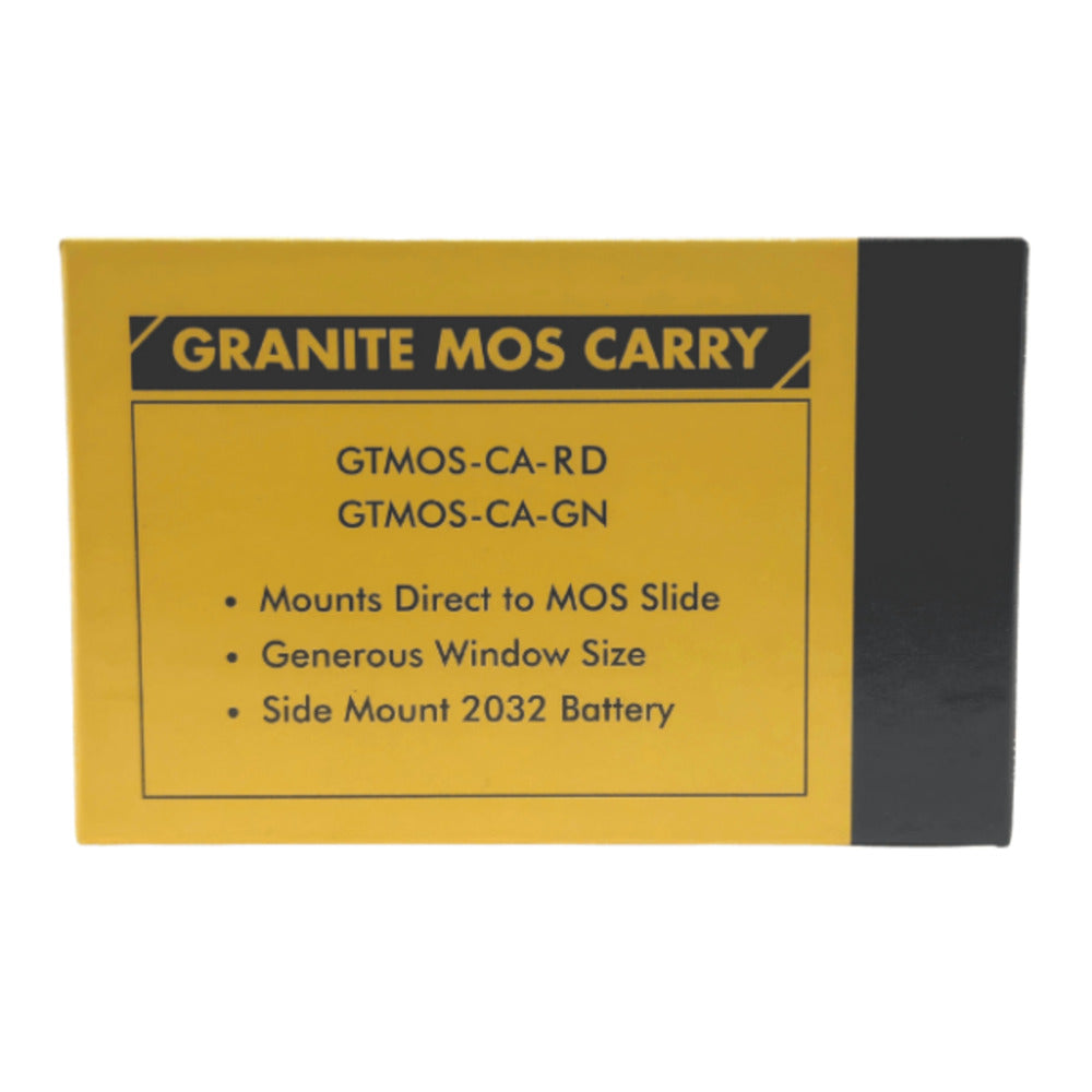 The Granite MOS Carry gives you a low-profile red dot for better concealed-carry accuracy. The Granite ensures your MOS footprint slide has a reliable optic for faster target acquisition and improved accuracy. With top-tier features like a motion-detecting sleep mode and adjustable windage, elevation, and brightness, the only thing missing from this practical red dot sight is the big-name price tag. Upgrade your gun sight with an optic that delivers cost-effective performance round-after-round.