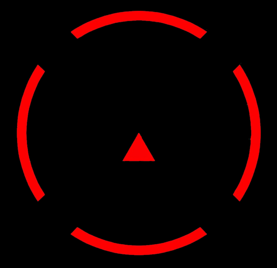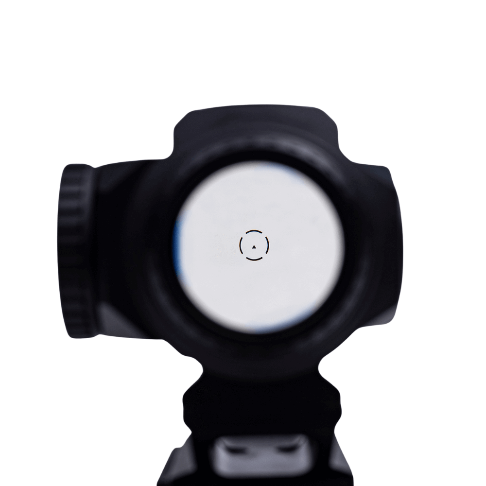 Advanced triangle-within-circle reticle for quick target acquisition at short to intermediate distance.