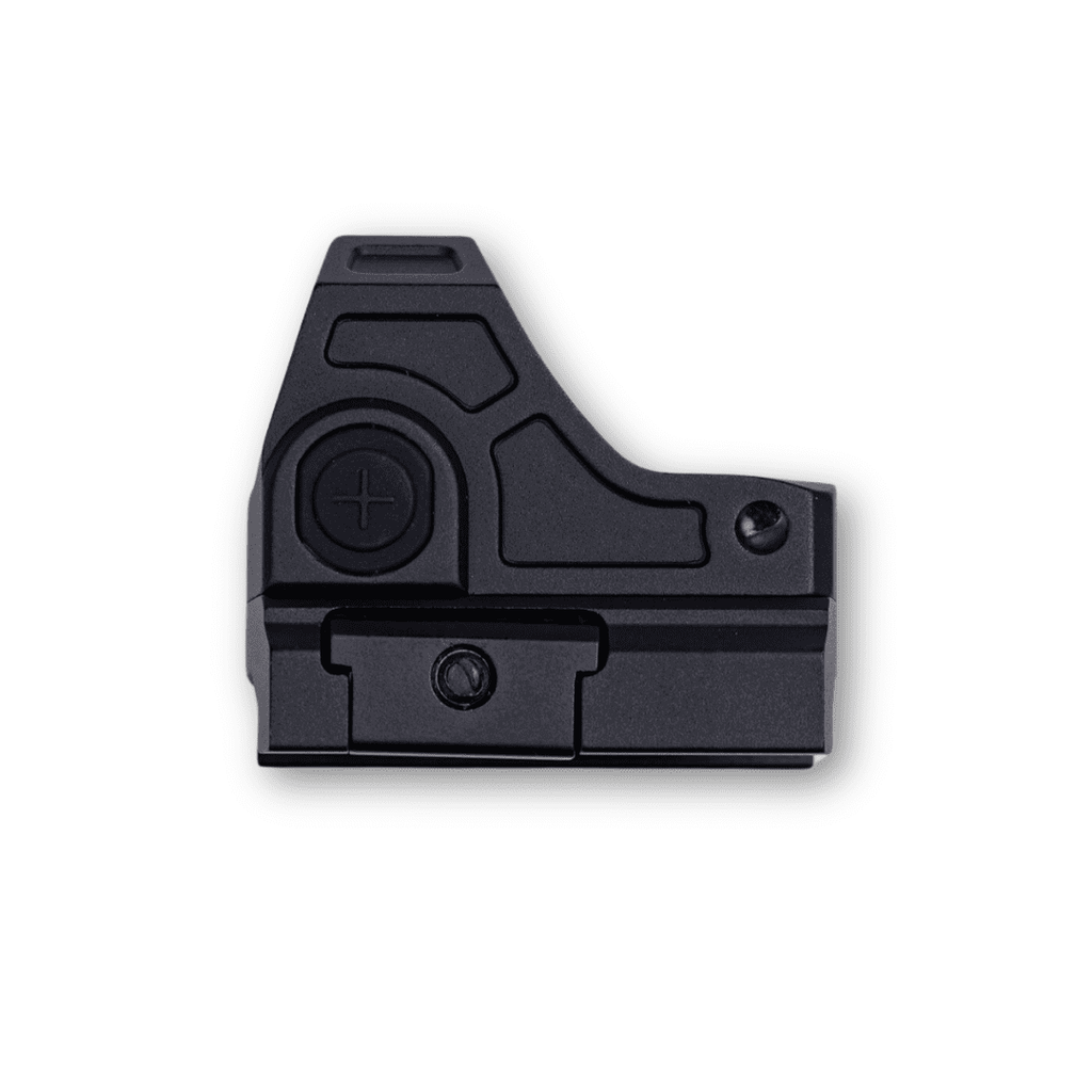 This RMSC red dot sight has a lens window just 16mm tall and 21mm wide that provides unlimited eye relief and parallax-free aiming out to 33 yards.
