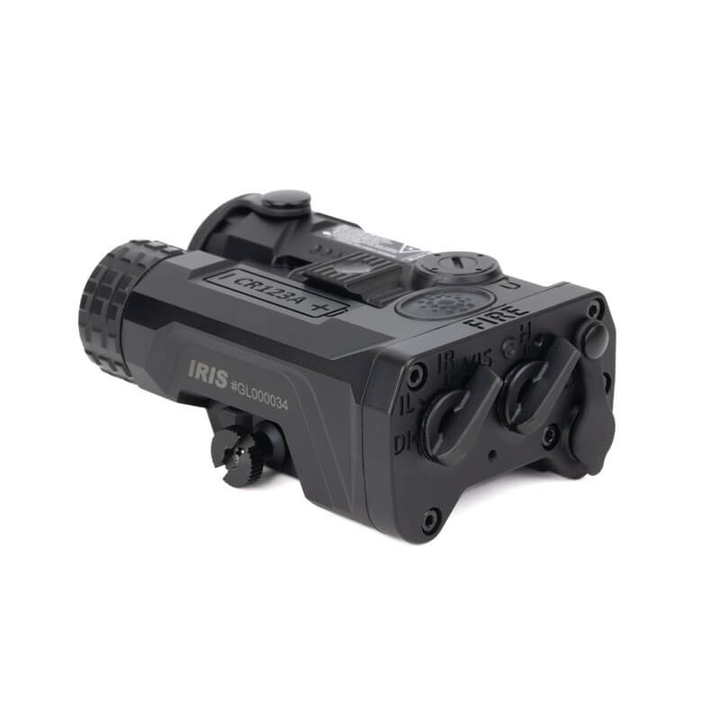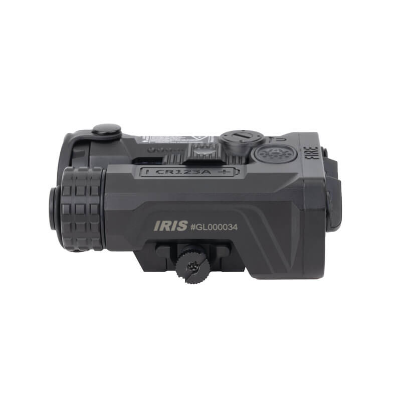 IRIS-3 is a triple function multi-laser device with a redesigned 7075 aluminum housing that is 43% lighter and sits 20% lower than the previous model. IRIS-3 now boasts a powerful 60mW IR VCSEL (infrared) illuminator along with a VIS (visible) laser pointer and infrared (IR) laser pointer. Additionally, the IRIS-3 now features a center-positioned fire button for ambidextrous activation of momentary or constant ON functions. IRIS-3 also features updated, rear-facing power and mode selector switches with improved ergonomics and feel. An all-new, ultra-compact two-button remote activation switch features a VIS override function and is included. IRIS-3 is available with either a green or red VIS laser pointer.