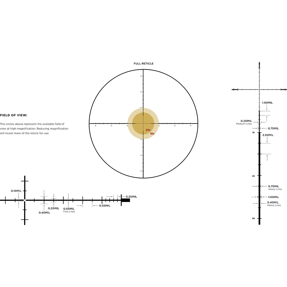 In First Focal Plane (front focal plane) scopes, the reticle grows and shrinks at the same rate as the target when you adjust the magnification. This allows you to accurately use the reticle feature at any magnification setting. These reticles are ideal in tactical situations but can also aid in range estimation for hunters and target shooters.