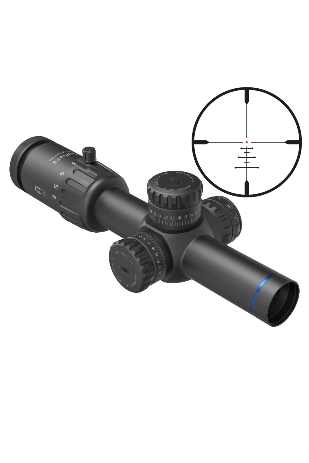 MeoPro R6 1-6x24 SFP RD model with BDC 3 reticle with high dials and parallax correction adjustment.