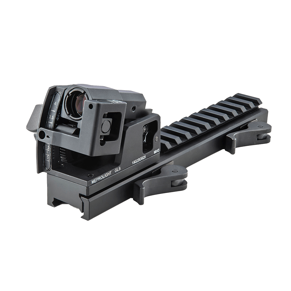 The highly durable, MIL-SPEC, MEPRO GLS features large eye relief, allowing the user to rapidly acquire the target with both eyes open, thus dramatically increasing first hit probability. Simply superimpose the illuminated dot in the sight window onto the target and shoot. The internal compensating system factors in grenade spindrift and corrects for it. Achieving high accuracy —day or night —is no longer a problem. The lightweight compact unit mounts with three different mounting adaptors to Picatinny top and side rails.