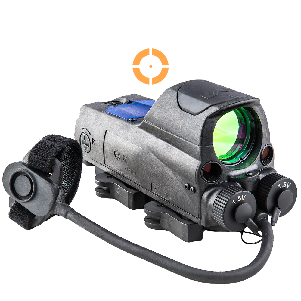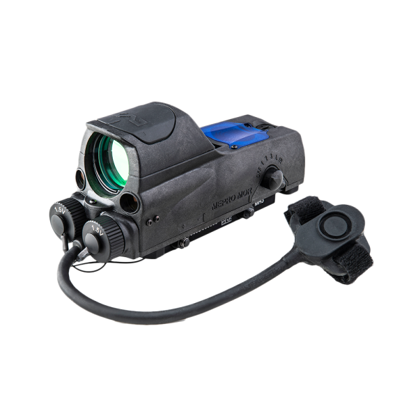 The MEPRO MOR is equipped with a 9” length pressure switch cable with a disconnection sensor for fast and easy operation of the pointers with both constant and momentary modes. The pressure switch cable is attached to the weapon externally using a velcro strap. Activation on the pointers is also possible without the cable if the cable is missing or damaged. A malfunction of the cable is indicated by rapid flashing of the aiming reticle.