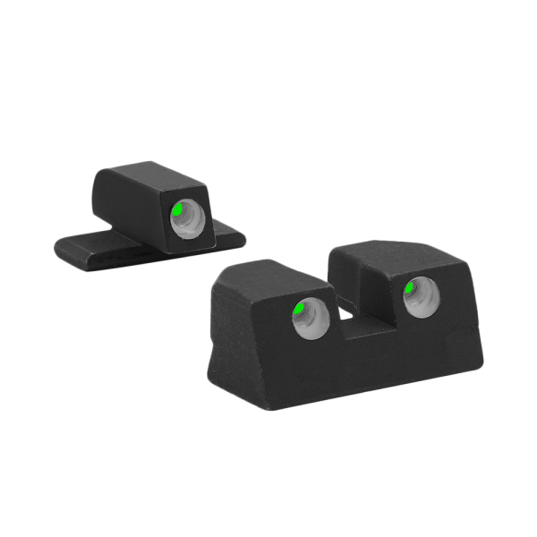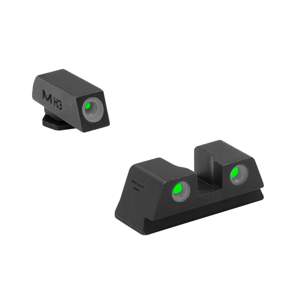 Premium Swiss-made tritium vials in the front and rear sights allow for low light and no light conditions. The square notch on the rear sight naturally directs your eyes to the top of the front sight. Mepro Tru-Dot® sight sets are engineered as a direct upgrade to your factory sights and are designed to fit all holsters.