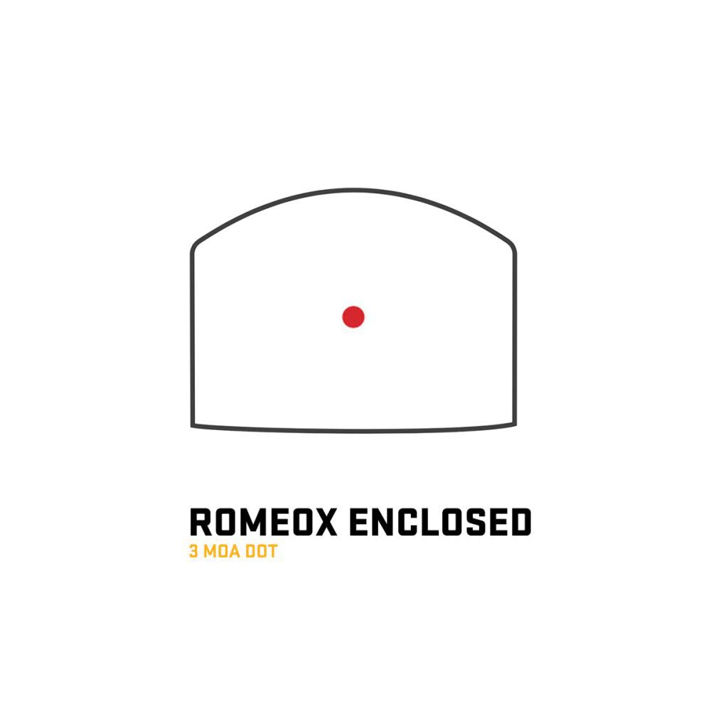 Featuring a robust CNC 7075 aluminum housing and aspherical glass lens system built around a high-efficiency point source emitter, the ROMEO-X Enclosed creates a rock-solid, distortion free, aiming solution for the most demanding shooters and circumstances.
