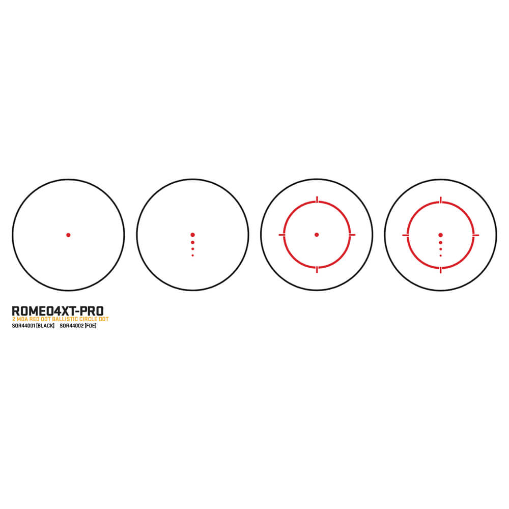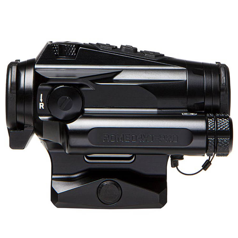 The ROMEO4XT-PRO offers the same high-end optical performance, quad-reticle, and legendary durability of the original ROMEO4T while adding key features requested by professionals. Illumination control moves to the top, providing easy access with either hand while staying clear of chest rigs and plate carriers when slung.
