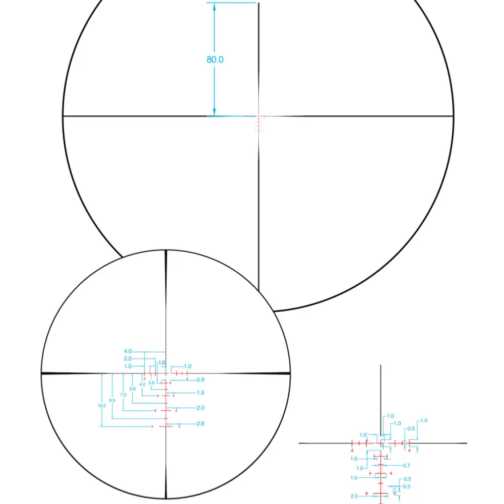 Subtensions on the lower vertical axis help compensate for drop at longer ranges, enabling precise holdovers without dialing.