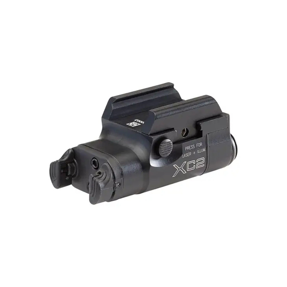 Be Prepared For Anything. Lightweight and compact, the SureFire XC2-B securely mounts to railed handguns without hampering your handgun's concealability and delivers 300 lumens of white light plus a highly visible <5-milliWatt (Class IIIa) laser aiming device powered by a single AAA battery. Our proprietary, precision-engineered smooth parabolic reflector projects a beam with a focused hot spot for mid-to-long-range illumination along with a corona of diffused light optimized for situational awareness in the near field., while the laser allows you to rapidly acquire a target without having to align your iron sights, a critical advantage if using a nonstandard shooting position is necessary. Once zeroed, the laser rarely needs re-zeroing, thanks to a proven windage and elevation adjustable laser carriage and a robust rail clamp mount that will not shift under the effects of recoil. The XC2-B's intuitive, ambidextrous switching provides both momentary- and constant-on activation options. Its precision-machined aerospace aluminum body is Mil-Spec hard anodized and sealed to repel the elements. As a result, it's plenty rugged enough for everyday carry and light enough that it won't weigh you down.