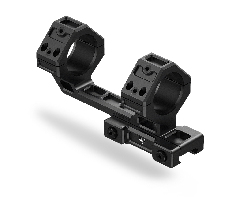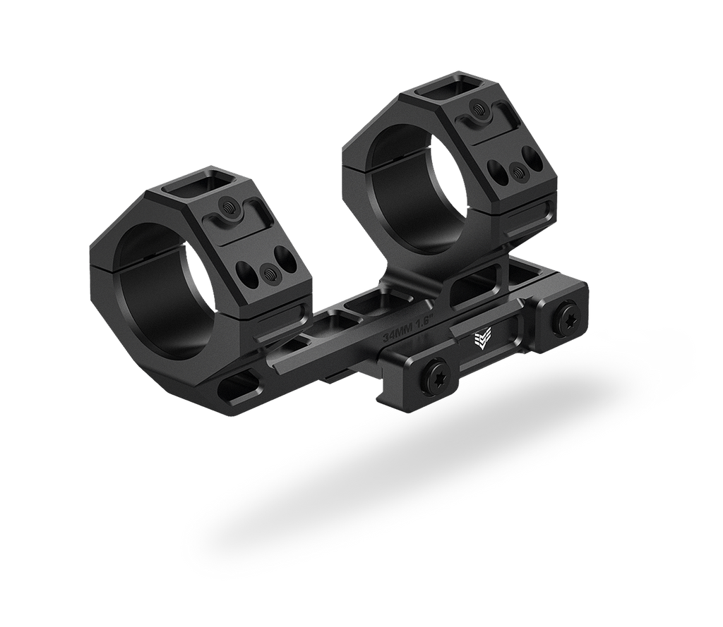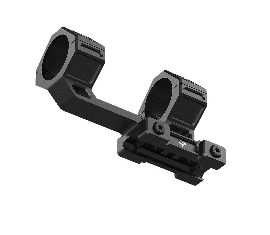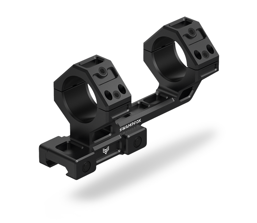 We took our proven Hostile Engagement Rings, fused them together and created the beefy one-piece Hostile Engagement Mount. Made from 7075-T6 aluminum and finished in matte black hardcoat, the Hostile Engagement Mount extends the center of the forward ring 2” beyond the edge of the 1913 Picatinny mounting surface. This configuration is perfect for LPVOs with generous eye relief, like Tomahawk and Arrowhead. Low profile T25 Torx bolts provide more clamping power than thumb nuts, while integrated recoil lugs ensure everything stays locked down. Built-in RMR footprint mounts at 45⁰ angles are threaded 3.5 x 0.6 for installing an offset back up dot sight like Kingslayer, Liberty or Justice.