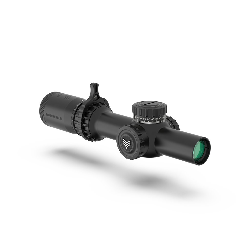 Tomahawk II is equipped with a push/pull locking elevation turret with zero reset and 0.5 MOA adjustments across a 160 (1-4x) / 100 (1-6x) MOA range to accommodate in-field adjustments and uphill and downhill angles. Windage also offers 0.5 MOA/click adjustment and a 120/100 MOA range for even the strongest of gusts. From close quarters engagements to long-distance targets, take aim with precision confidence shot after shot.
