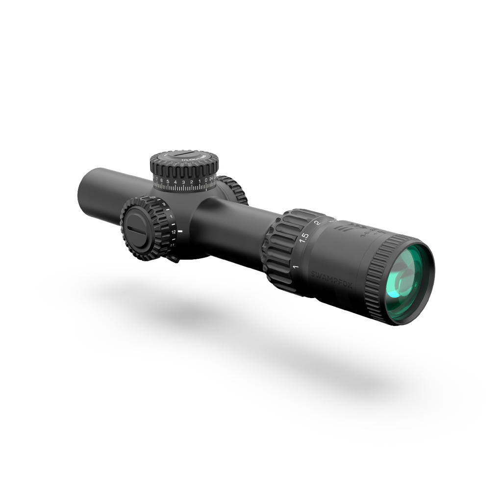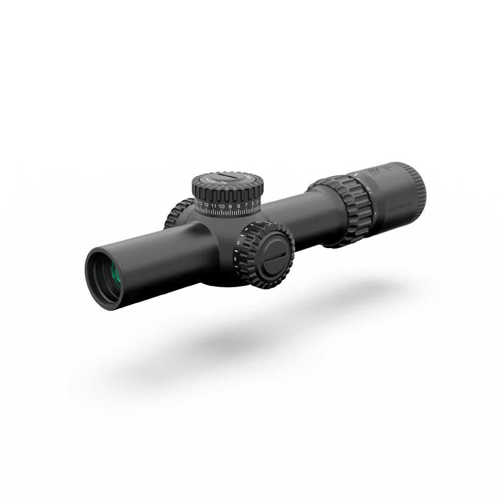 Swampfox’s premier first focal plane (FFP) low power variable optic (LPVO), Warhorse combines speed and accuracy for any shooting scenario. This versatile riflescope transitions smoothly from 1x to 6x magnification for rapid target acquisition and long-range precision. Warhorse features a push/pull locking elevation turret with zero reset, capped windage turret, and 12-position illumination turret with night vision compatibility. The compact LPVO is built on a 34mm tube and features a clean etched MOA or MIL reticle, providing maximum light absorption and supreme glass clarity for ultimate performance. Warhorse exemplifies the next evolution of Swampfox riflescopes.