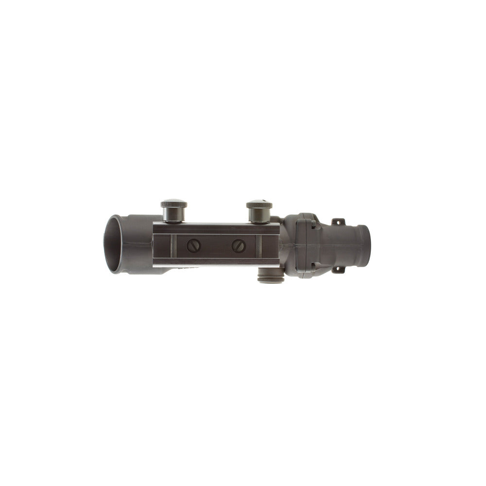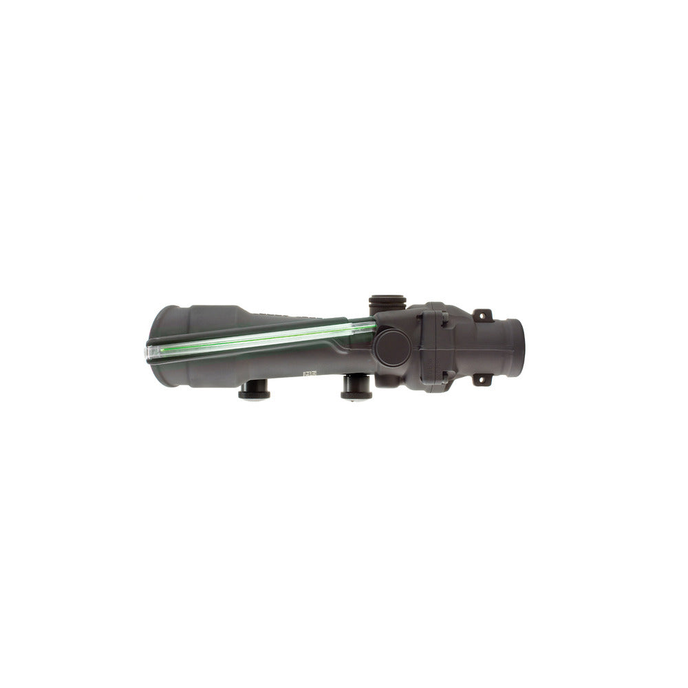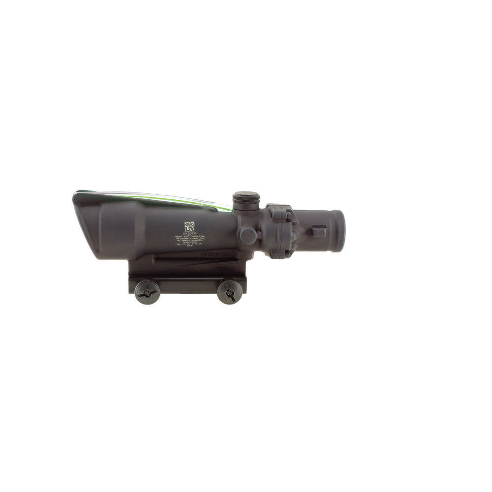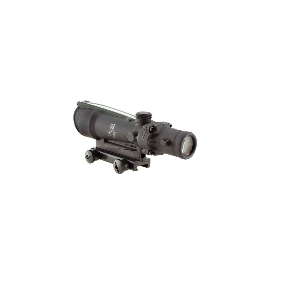 ACOG 3.5x35 scope with Green Chevron BAC Reticle- The ranging reticle is calibrated for 5.56 (.223 cal) flat-top rifles to 800 meters. Includes Flat Top Adapter. The chevron reticle is designed to be zeroed using the tip at 100 meters. The width of the chevron at the base is 5.53 MOA which is at 19” at 300 meters. This allows range estimation for silhouette targets.