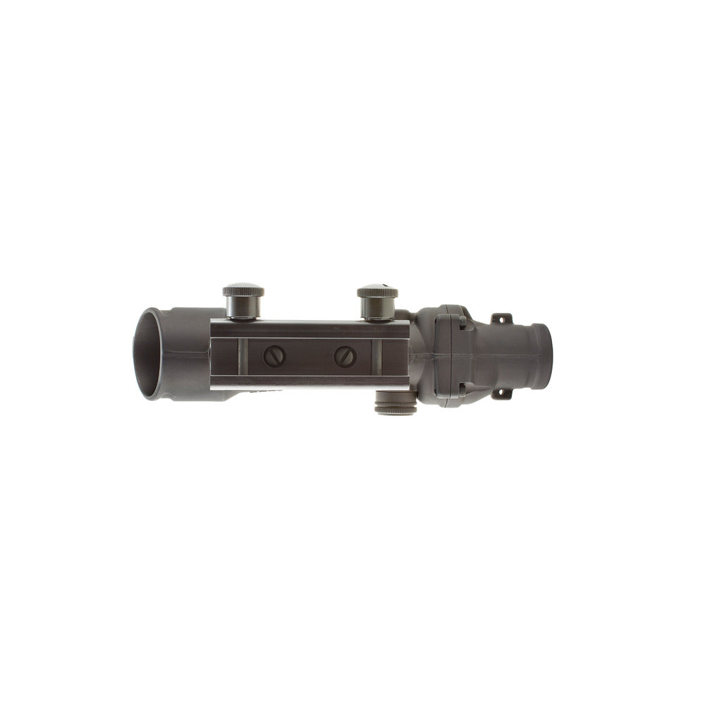 ACOG 3.5x35 scope with Green Crosshair Reticle—the ranging reticle is calibrated for 5.56 (.223 cal) flat-top rifles to 1000 meters. Includes Flat Top Adapter. Daytime illumination is provided by fiber optics and Tritium illuminates the scopes at night.