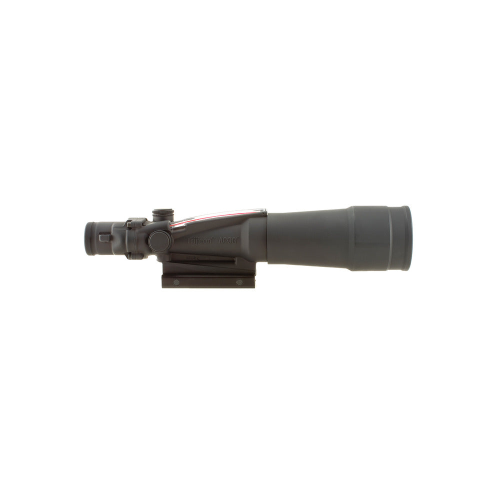 ACOG 5.5x50 Red Chevron BAC Flattop.223 Reticle includes flat top adapter. The chevron reticle is designed to be zeroed using the tip at 100 meters. The width of the chevron at the base is 5.53 MOA which is “19 at 300 meters. This allows range estimation for silhouette targets.