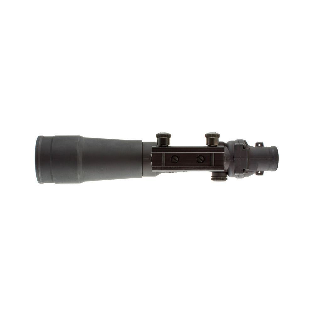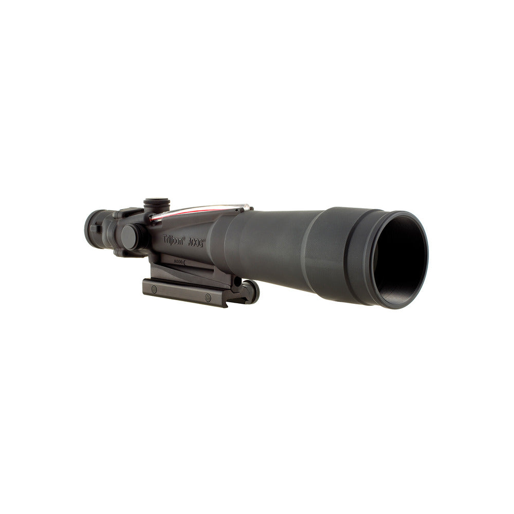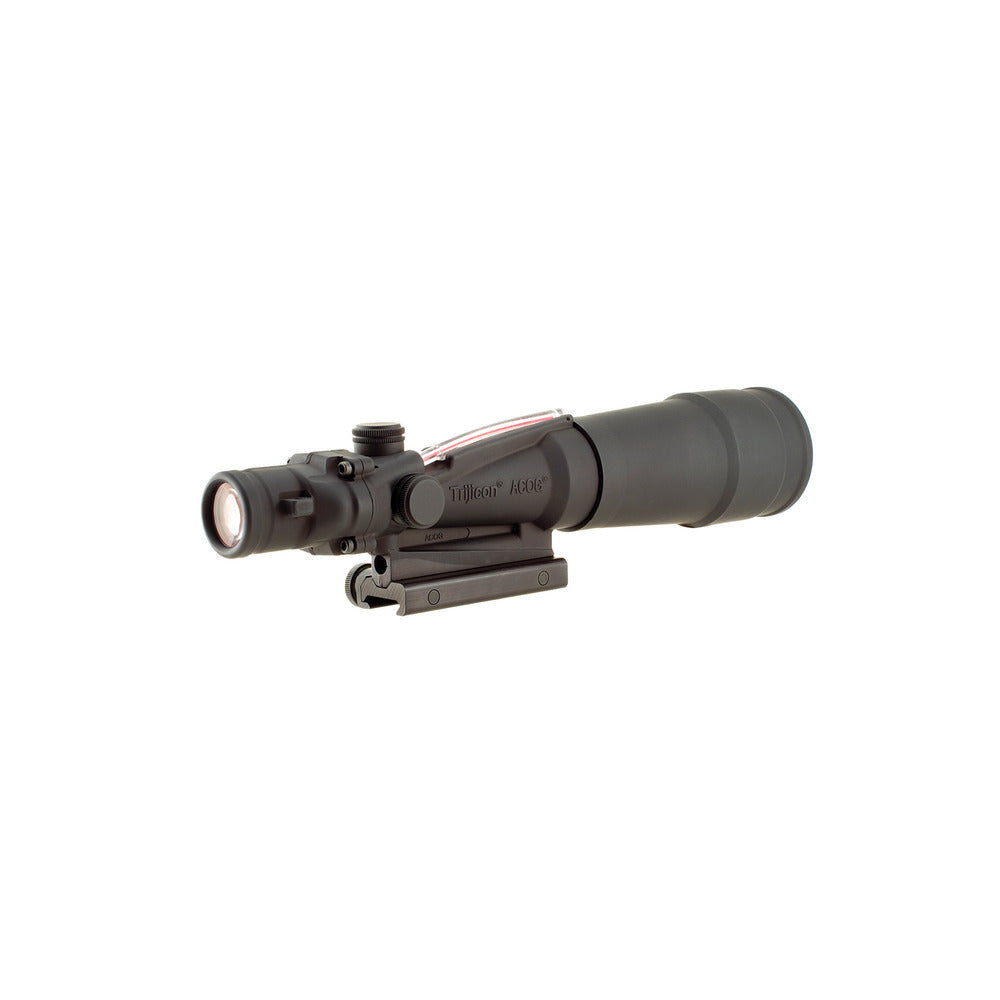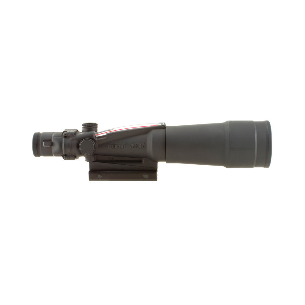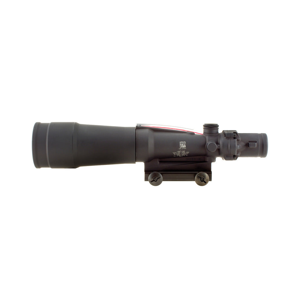 ACOG 5.5x50 Red Chevron BAC Flattop.308 Reticle includes flat top adapter. The chevron reticle is designed to be zeroed using the tip at 100 meters. The width of the chevron at the base is 5.53 MOA which is 19 in. at 300 meters. This allows range estimation for silhouette targets.