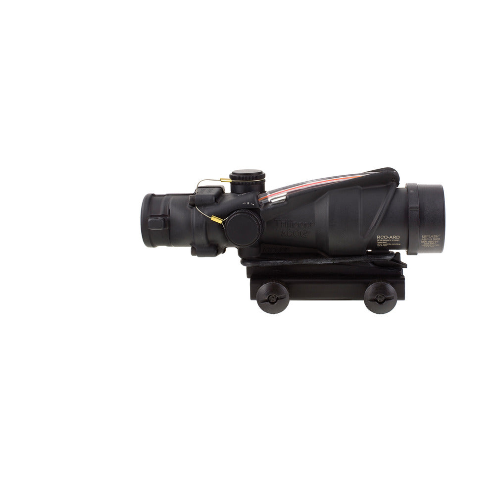 The TA31RCO is an Advanced Combat Optical Gunsight (ACOG) designed for the USMC's M16A4 weapon system (20” barrel). It incorporates dual illumination technology using a combination of fiber optics and self-luminous tritium. This allows the aiming point to always be illuminated without the use of batteries. The tritium illuminates the aiming point in total darkness, and the fiber optic self-adjusts reticle brightness during daylight according to ambient light conditions. This allows the operator to keep both eyes open while engaging targets and maintaining maximum situational awareness. Designed to the exact specifications of the United States Marine Corps, the unique reticle pattern provides quick target acquisition at close combat ranges while providing enhanced target identification and hit probability out to 800 meters utilizing the Bullet Drop Compensator. There are no tools for windage and elevation adjustments because the TA31RCO features external adjusters, making it waterproof up to 11m without the caps. Mounting bosses are integrated into the housing by the eyepiece to allow the easy addition of a Trijicon RMR® (not included).