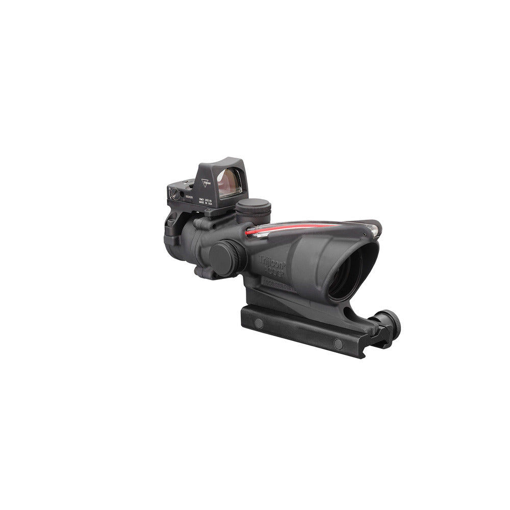 Adapted from the battlefields, US Forces have begun improving this proven Trijicon ACOG scope by adding a small red dot sight on top for close encounter missions. Trijicon has now created a similar model for the public, the TA31-D-100549. The main Trijicon scope provides a dual-illuminated reticle using fiber optics and tritium for bright aiming point in any light condition. The ranging reticle allows for bullet drop compensation out to 800 meters without any manual adjustments. A Trijicon RMR Type 2 sits on top with a 3.25 MOA aiming dot.