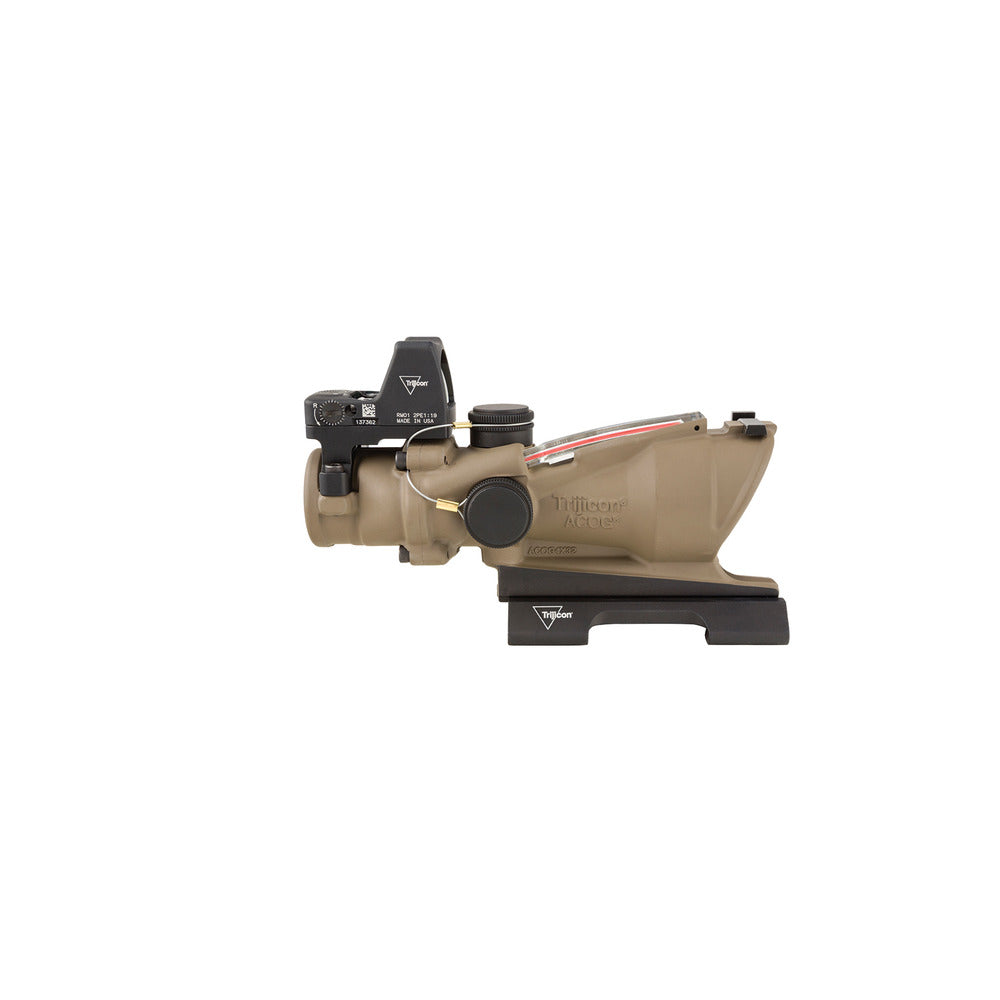 The Trijicon ACOG ECOS is the ultimate sight for both Close Quarter Battle (CQB) situations and longer distance shooting where accuracy and pinpoint bullet placement are required. This dual-sighting system gives the shooter a distinct tactical advantage with the option of either the Trijicon ACOG or RMR Type 2 sight. With the quick target acquisition of the RMR Type 2 Sight or the precise aiming capabilities provided by the magnified 4 power Trijicon ACOG— the shooter has the ability to select the proper aiming solution for the situation at hand—truly the best of both worlds. No tools are needed for windage and elevation adjustments because the ECOS also features external windage and elevation adjusters, making it waterproof up to 11m without caps.