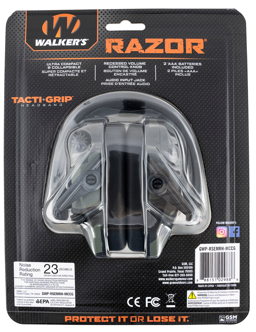 Walker's GWPRSEMRHMCCG Razor Slim Electronic Muff Polymer 23 dB Over the Head Gray MultiCam/Black Adult